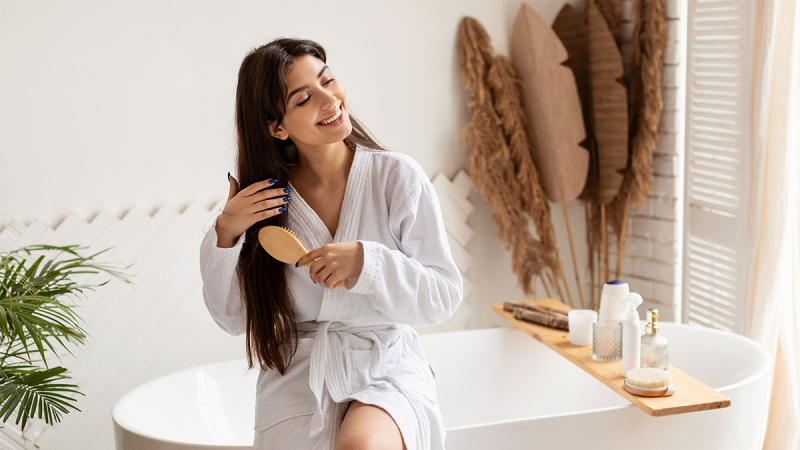 По словам Моник, она отказалась от тугого пучка на макушке. Такая прическа может травмировать волосяной фолликул и спровоцировать выпадение волос. Помимо этого, парикмахер рекомендует никогда не ложиться спать с мокрой головой – влажные волосы особенно уязвимы и могут легко сломаться при трении о подушку, пишет журнал TheVoice.