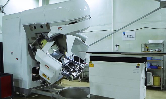«Оникс» предоставит медикам возможность осуществления лучевой терапии по действительно передовым методикам, в том числе с контролем положения больного. В состав комплекса включены томограф, стол терапевта, а также удобная цифровая система управления.