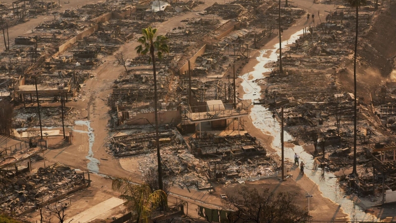 Лесные пожары начали распространяться в округе Лос-Анджелес 7 января. По мнению метеорологов, причиной быстрого распространения огня стала сухая и очень ветреная погода. Огонь уничтожил более 10 тысяч строений в регионе. Как уточняют местные власти, число погибших при пожарах увеличилось до как минимум 11 человек, 13 человек числятся пропавшими.