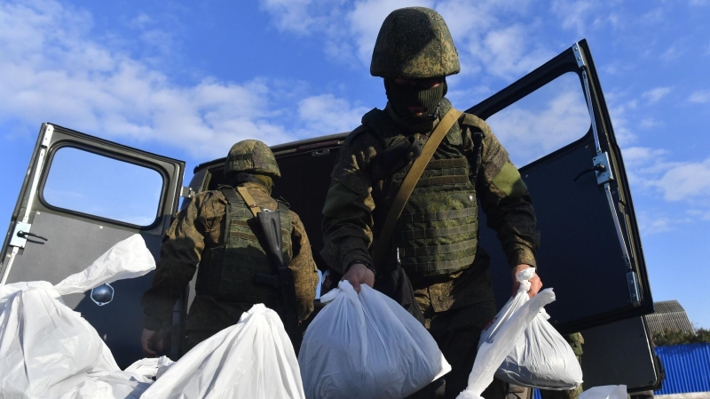 КАМЕНКА-ДНЕПРОВСКАЯ (Запорожская область), 7 ноя — РИА Новости. Военнослужащие РФ призванные по частичной мобилизации и прибывшие для несения службы в Запорожскую область, помогают волонтерам оказывать гуманитарную помощь местному населению, передает корреспондент РИА Новости.